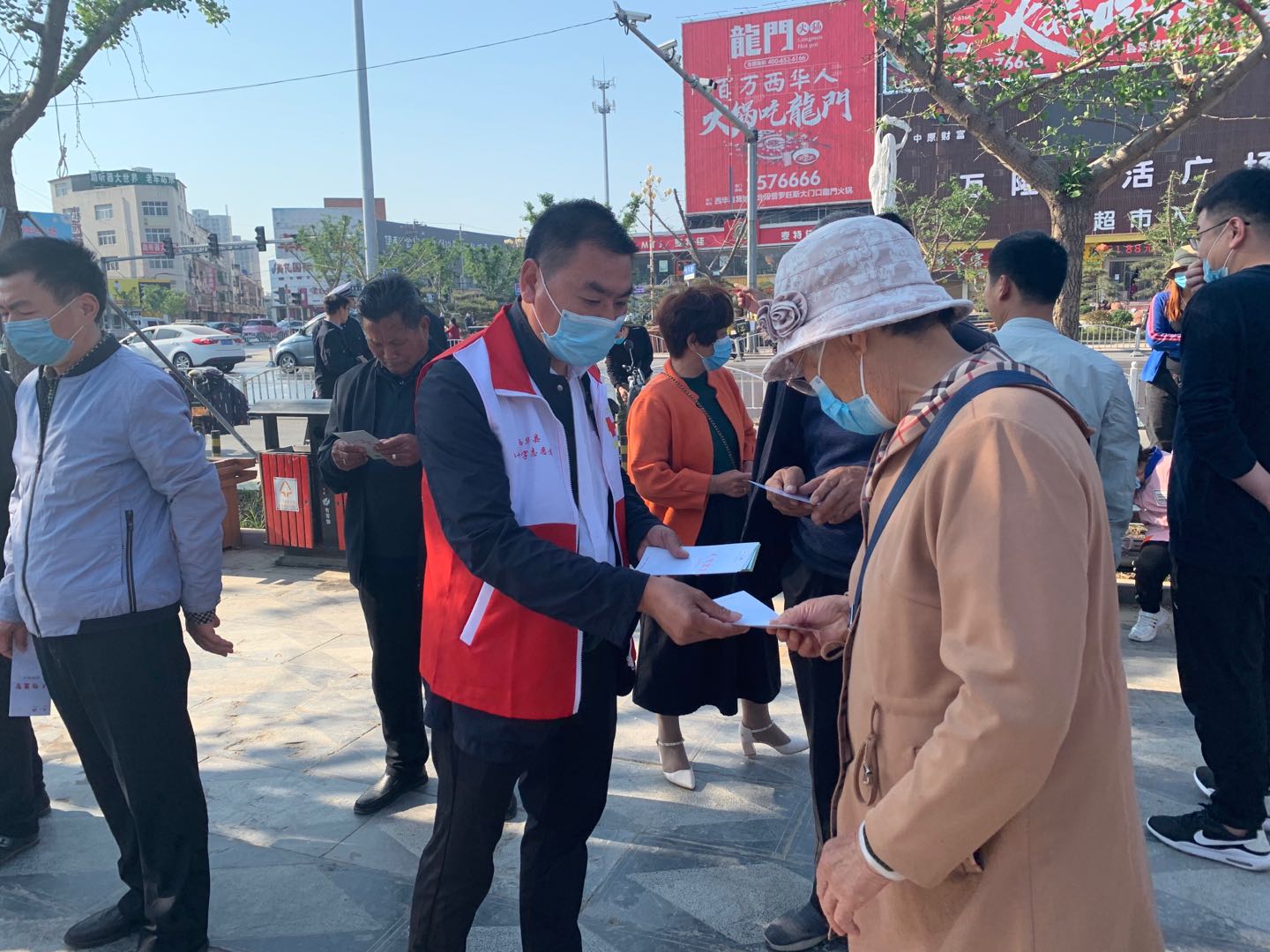 在該縣中心廣場,縣人民醫(yī)院、縣中醫(yī)院科室的骨干醫(yī)生搭起了義診臺,為過往市民量血壓,開展義診活動。同時,通過擺放宣傳展板和發(fā)放宣傳冊向過往市民宣傳常見病防護知識以及紅十字會的由來、發(fā)展過程、無償獻血、造血干細胞、預防新型冠狀病毒指南相關內容。
