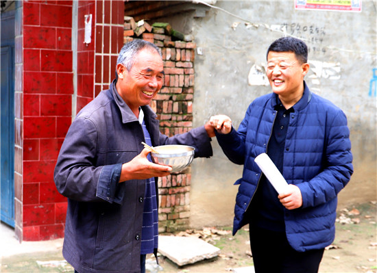 “我先說(shuō)。2015年建軍節(jié),我到鎮(zhèn)政府去接劉俊義,他帶著鋪蓋和鍋碗瓢盆,看身材、看氣質(zhì),當(dāng)時(shí)我就問(wèn)‘你當(dāng)過(guò)兵吧?’他干脆地回答‘是’。這個(gè)日子我記得清,那天下了雨,閑置多年的村室漏雨沒(méi)法住,劉俊義又連夜回城,第二天就帶人來(lái)整修村室、打掃衛(wèi)生?!痹诓稍L座談會(huì)上,時(shí)任馬莊行政村黨支部書(shū)記的于天同眼泛淚花說(shuō):“咱也不遮不掩,之前馬莊確實(shí)是村級(jí)黨組織軟弱渙散村,貧困戶多,工作艱難。劉俊義來(lái)了之后,處處作表率,沒(méi)日沒(méi)夜拼命地干,大雨中幫趙冬升家收麥子、爬房頂幫于小非家修屋子……更關(guān)鍵的是請(qǐng)公路局把全村的路修通了,裝上了路燈,一條扶貧路通到馬莊村群眾的心窩里,是黨的光輝把馬莊3000多人的心照亮了?!?/p>