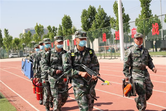 活動現(xiàn)場,八一軍旗、民兵隊旗迎風飄揚。上午9時許,全體起立,現(xiàn)場奏響雄渾的《中國人民解放軍進行曲》。接著,政委郭立君宣讀了民兵干部任職命令,應急班長帶領(lǐng)全體民兵進行了宣誓,新入隊民兵進行了表態(tài)發(fā)言。應急指揮所開設、隊列表演、警棍盾牌操匯報、快速控火救人、戰(zhàn)場急救……一個個精彩的匯報,贏得現(xiàn)場掌聲陣陣。