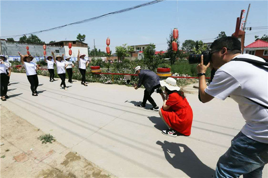 采風(fēng)期間,10多名專(zhuān)業(yè)攝影師奔赴奉母鎮(zhèn)前邵村、前于王村以及孝賢碑林等地,進(jìn)行實(shí)地探訪采風(fēng)。前邵村是當(dāng)?shù)赜忻膫鹘y(tǒng)村落,村里文化氛圍濃厚,先后走出10多位戲曲方面的國(guó)家一級(jí)演員。在該村,一支業(yè)余的文藝宣傳隊(duì)引起攝影家們關(guān)注的目光。大家即興表演了兩三個(gè)節(jié)目,引得攝影家們極大興趣,不停按下快門(mén)拍攝。