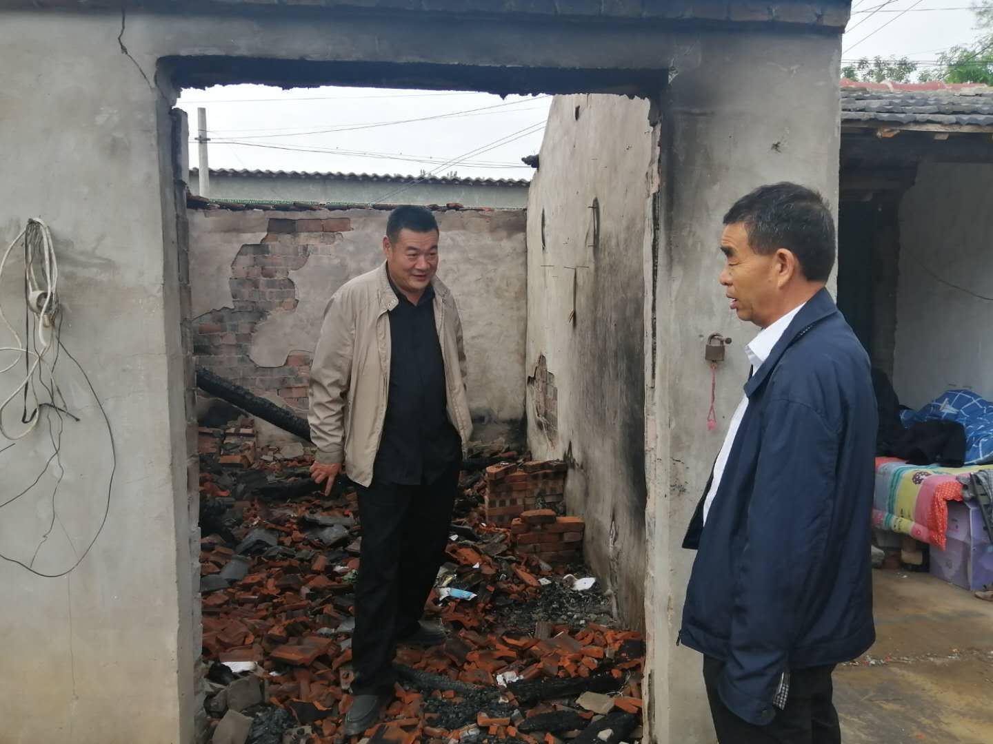 聽完情況后,督導(dǎo)組立刻和駐村工作人員一起到李洪范家查看情況,現(xiàn)場主屋已經(jīng)全部燒毀,屋里到處是瓦礫......李洪范站在被燒毀的房屋里,表情木納的自言自語道“燒得一干二凈,什么都沒了,這以后咋弄呀。”現(xiàn)場詢問其生活情況時,李洪范說,“當天,鄉(xiāng)里邊就送來了米、油和錢。村長也送來了幾件衣服,現(xiàn)在就是沒有地方住?!?/p>