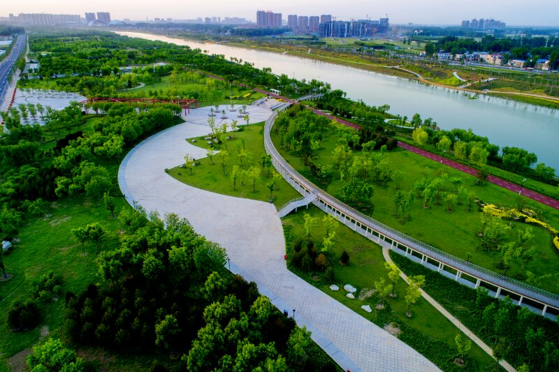 在中心城區(qū),周口市積極推進森林進城,實施“一帶四林百園”工程。由政府主導,高標準規(guī)劃,吸引民間資本參與,沿環(huán)城高速兩側(cè)建成300米的生態(tài)林帶,加快推進5000畝森林公園、6000畝建業(yè)綠色基地建設,改造提升2000畝文昌生態(tài)園為植物園,啟動鐵路主題公園建設,改建100個街頭游園,通過實施規(guī)劃見綠、見縫插綠、拆墻透綠、屋頂植綠等,形成街道綠化、公共綠地和庭院綠化三位一體,市區(qū)和近郊相接的城市綠化格局。目前,城市建成區(qū)綠化覆蓋率達41.21%,綠地率達35.88%,人均公園綠地面積達12.62平方米。