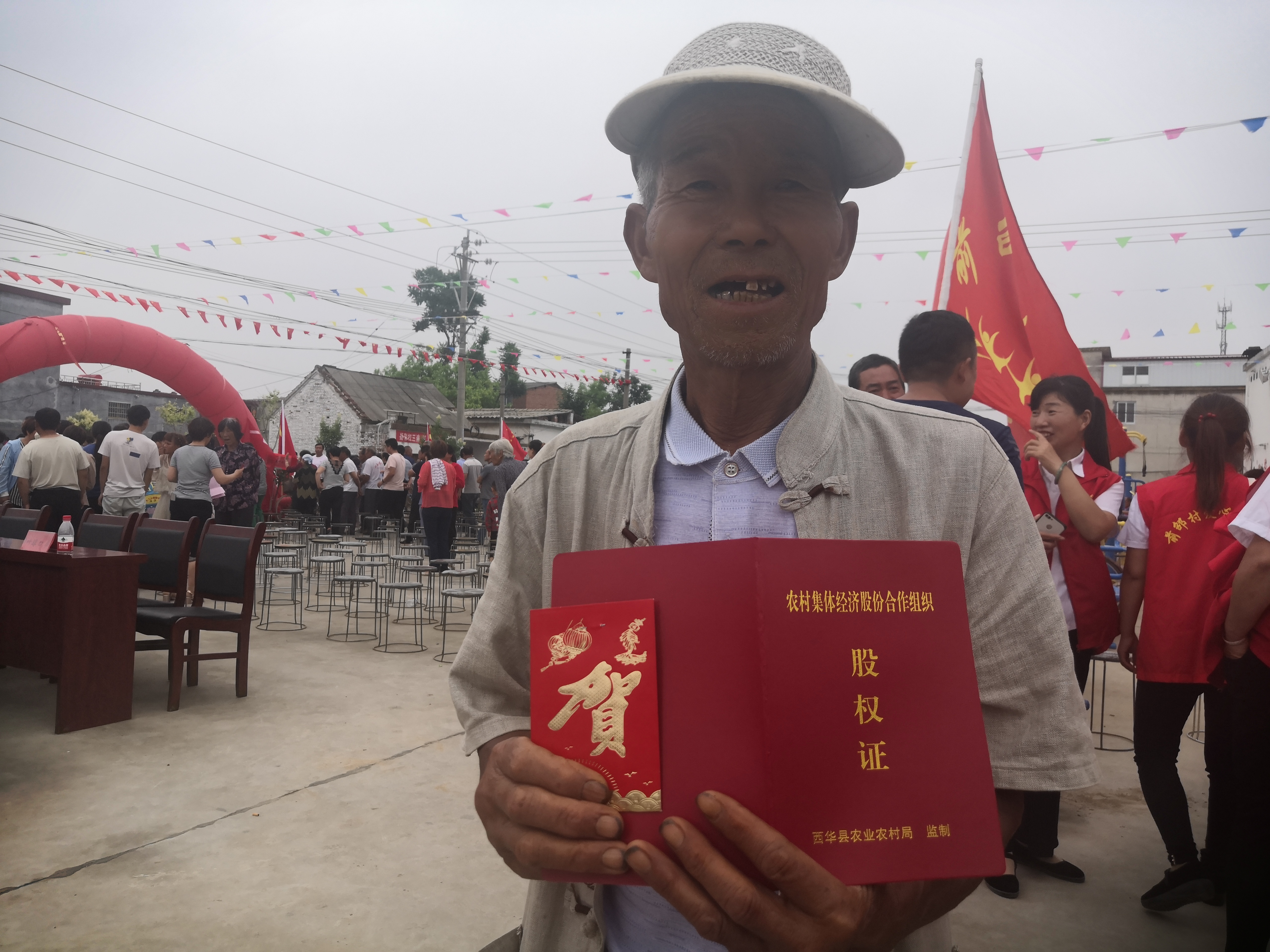 “鄉(xiāng)親們,現(xiàn)在開始分紅!”6月12日下午,隨著西華縣委書記林鴻嘉宣布,奉母鎮(zhèn)七二村集體經(jīng)濟第一次分紅大會拉開序幕,全村1584名村民第一次以股東身份領(lǐng)取集體經(jīng)濟分紅,這標志著我市農(nóng)村集體經(jīng)濟產(chǎn)權(quán)改革邁出堅實的步伐。
