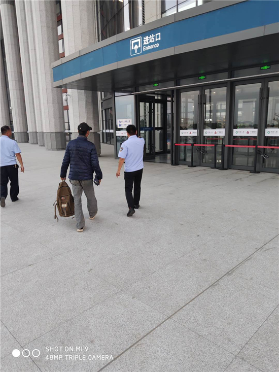 晚上8時(shí)許,陳劍鵬安排副所長(zhǎng)趙良帶領(lǐng)輔警楊國(guó)強(qiáng)、李偉平,將該男子送到沈丘高鐵站踏上回家的路程,該男子多次為派出所民警鞠躬致謝,并流下感激的眼淚。