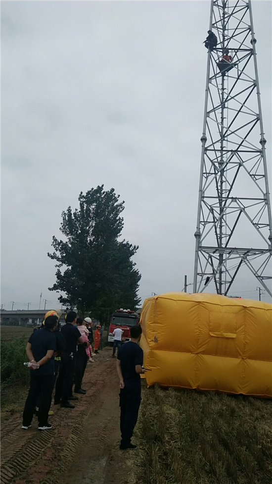 一名山東籍男子因感情矛盾,爬上位于沈丘縣付井鎮(zhèn)轄區(qū)一50多米高的信號(hào)塔上準(zhǔn)備自殺。6月18日上午,經(jīng)聞?dòng)嵹s來(lái)的該鎮(zhèn)鎮(zhèn)長(zhǎng)高光及派出所長(zhǎng)陳劍鵬等人近4小時(shí)勸說(shuō)該男子最終放棄輕生念頭。