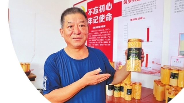 迎著朝陽,挎上背簍,戴好草帽,我來到后山的油茶林??吹揭活w顆飽滿的油茶果掛滿枝頭,再走到精煉車間,看著一粒粒茶籽變成一滴滴金色的茶油,我心里分外踏實。
