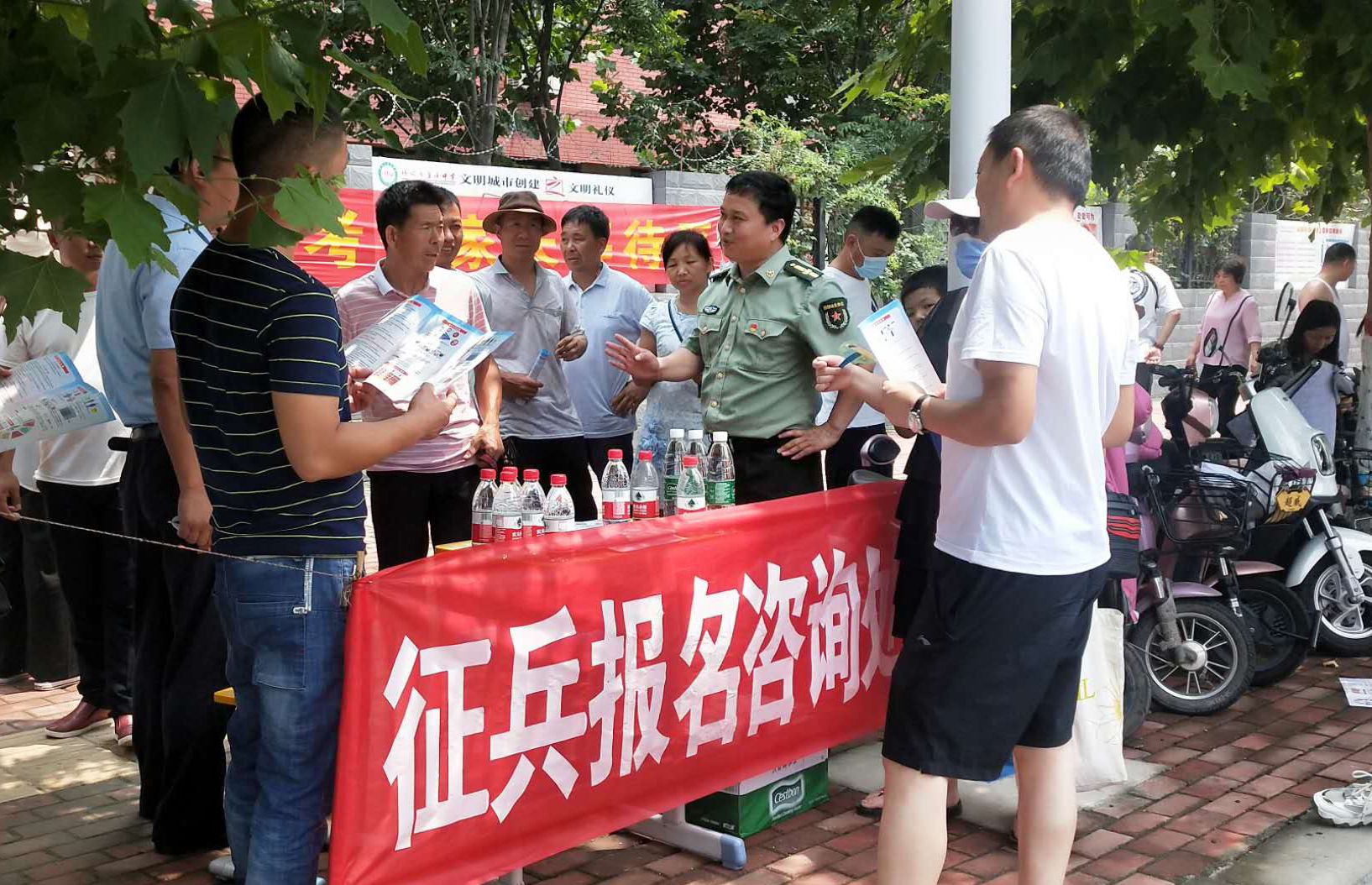 為強(qiáng)化全民依法履行兵役義務(wù)觀念,激發(fā)廣大適齡青年特別是高學(xué)歷青年參軍入伍熱情,7月7日至8日,項(xiàng)城市人武部組織機(jī)關(guān)所有人員和21個(gè)鎮(zhèn)(街道)辦事處武裝部長等36人,深入各考點(diǎn)設(shè)立征兵政策咨詢點(diǎn),懸掛宣傳標(biāo)語、擺放宣傳版面,開展以助力高考為目的的大學(xué)生征兵宣傳活動(dòng)。為不影響考場秩序避免打擾高考,7月7日全天,參加宣傳的工作人員悄悄走進(jìn)家長等待區(qū),現(xiàn)場向廣大考生家長以及過往群眾發(fā)放《應(yīng)征入伍明白卡》、《大學(xué)生入伍優(yōu)惠政策》等征兵宣傳資料,并接受咨詢。7月8日下午5點(diǎn)30分后,為期兩天的高考結(jié)束后考生放松的走出考場大門之際,所有人員同時(shí)守在大門外,一邊給考生發(fā)放宣傳資料,一邊接受學(xué)生咨詢和報(bào)名,給他們講解大學(xué)生入伍政策、法規(guī),介紹“應(yīng)征入伍的政治、文化、身體和年齡條件”、“報(bào)名程序”、“就業(yè)安置”等相關(guān)內(nèi)容,鼓勵(lì)高中畢業(yè)生帶著成績和文化知識投身軍營、報(bào)效祖國。