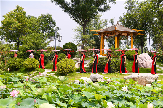 周口森林公園經(jīng)過近年的建設(shè)已經(jīng)成為市區(qū)休閑的一處好去處,風(fēng)景優(yōu)美,園林幽深,目前,盡管森林公園附近道路施工,進(jìn)出還不方便,但是仍吸引著很多居民前去休閑游玩,愛美的大媽們更是在這里秀一把,7月16日上午,來自市區(qū)模特隊(duì)的大媽們,穿著靚麗的旗袍,在荷葉飄香、假山園林秀林深處,開心地進(jìn)行一場(chǎng)模特秀。