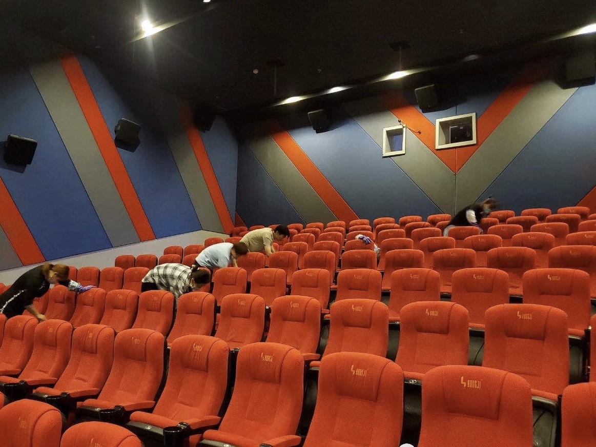 “停業(yè)六個(gè)月,終于等來了即將開門的喜訊?!苯ㄐ侣芬患矣俺枪ぷ魅藛T說。由于防疫需要,自1月24日以來,一直處于停業(yè)狀態(tài)。7月20日上午,記者來到影院看到工作人員正在對觀影設(shè)備進(jìn)行檢測、調(diào)試,并對影廳、公共區(qū)域等處進(jìn)行深度防潮防霉、消毒工作,以安全整潔的環(huán)境迎接影院重開。