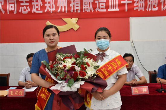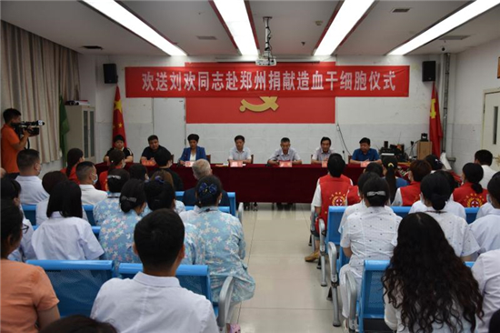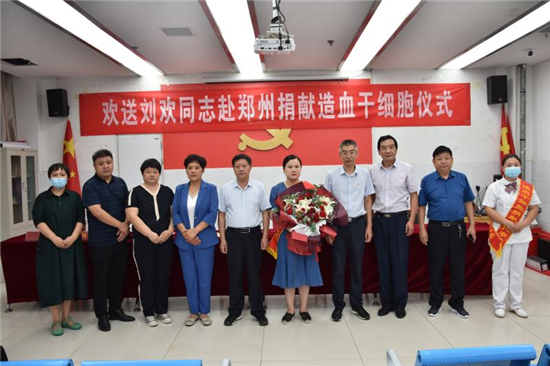 “作為一名醫(yī)務(wù)人員,能為患者帶來生的希望,無論如何我都不會(huì)拒絕。希望捐獻(xiàn)后那位患者能早日康復(fù),投入新生活……” 7月22日上午,在西華縣中醫(yī)院會(huì)議室舉行的劉歡同志赴鄭州捐獻(xiàn)造血干細(xì)胞歡送儀式上,這位來自該院骨科護(hù)士長(zhǎng)的一番話贏得現(xiàn)場(chǎng)陣陣掌聲。市紅十字會(huì)常務(wù)副會(huì)長(zhǎng)毛立營,市紅十字會(huì)秘書長(zhǎng)高春,西華縣委副書記郭峰,西華縣人民政府副縣長(zhǎng)、紅十字會(huì)會(huì)長(zhǎng)張翠霞,西華縣衛(wèi)健委副主任胡濤,西華縣中醫(yī)院院長(zhǎng)高彥博等出席歡送儀式。