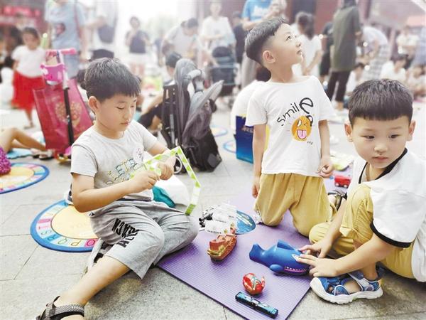 記者在現(xiàn)場(chǎng)看到,小朋友拉起了橫幅,擺上了玩具,搖身一變“小掌柜”,紛紛拉貨練攤、討價(jià)還價(jià)、吆喝售賣(mài)。
