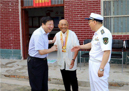 在90歲五級因戰(zhàn)殘疾軍人劉德山家,大伙認(rèn)真聽劉德山講述部隊的故事;汲冢鎮(zhèn)黃竹園行政村劉老家村88歲劉應(yīng)平參加過抗美援朝,如今年邁的老劉嚴(yán)重耳聾、語言交流障礙,還得靠親屬“翻譯”才能搭上一兩句話,當(dāng)聽到問他生活好不好時,老劉興奮地豎起拇指說:“好好好”;今年94歲的抗戰(zhàn)老兵丁相廷身體十分硬朗、精神矍鑠,不拄拐、眼不花、耳微聾,得知縣領(lǐng)導(dǎo)要來慰問,老丁早早地把自己的軍功章準(zhǔn)備好了,一個個掛在胸前,見面一個軍禮彰顯剛強作風(fēng)。從1945年入伍至1950年復(fù)員,老丁記得清楚、講得明白,大伙聽得有味、不停點贊;巴集鄉(xiāng)段寨村92歲抗美援朝老戰(zhàn)士段相士有個堅持幾十年的好習(xí)慣,他每天早上都在村里走一圈,感受美麗鄉(xiāng)村變化,再用溫水抹抹澡,保持健康體魄。