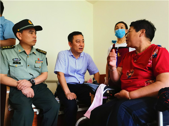 她一位勤勞純樸的農(nóng)家婦女,她既沒(méi)有驚天動(dòng)地的壯舉,也沒(méi)有感激涕零的事跡,卻是一位值得稱贊的最美“兵媽媽”,她就是“雙一等功臣”兵王侯國(guó)領(lǐng)的母親王玉勤。7月29日,“八一”建軍節(jié)來(lái)臨之際,得知她身患疾病,目前居住在周口市區(qū)一家養(yǎng)老機(jī)構(gòu)后,周口軍分區(qū)政治工作處主任李揚(yáng)、周口市退役軍人事務(wù)局副局長(zhǎng)、市雙擁辦副主任孫光濤、市民政局養(yǎng)老工作科有關(guān)人員以及愛(ài)心企業(yè)家王留長(zhǎng)、周口魔耳教育校長(zhǎng)宋曉莉等一行人前往慰問(wèn),營(yíng)造暖心的擁軍優(yōu)屬節(jié)日氛圍。