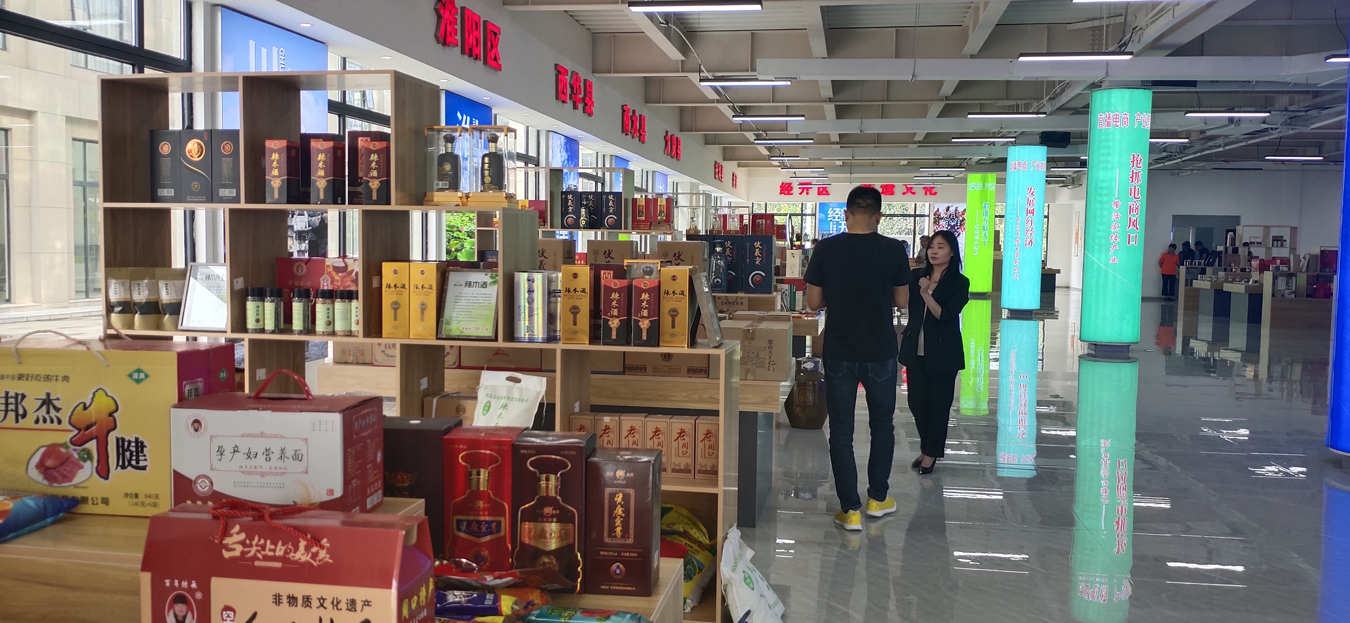 中心展廳面積達(dá)1000多平方米,按照不同縣(市、區(qū))劃分為十幾個(gè)區(qū)域,集中展示邦杰牛肉、伏羲貢酒、鄧城豬蹄、汝陽(yáng)劉毛筆、三川豫龍復(fù)合肥等周口產(chǎn)品。這些產(chǎn)品都是來自各縣(市、區(qū))等地農(nóng)工副土特產(chǎn)品以及非遺產(chǎn)品?!拔覀儗⑼ㄟ^抖音、快手等視頻平臺(tái),把這些產(chǎn)品銷往全國(guó)各地。” 該基地負(fù)責(zé)人、周口東方會(huì)展商會(huì)會(huì)長(zhǎng)于海崗說。