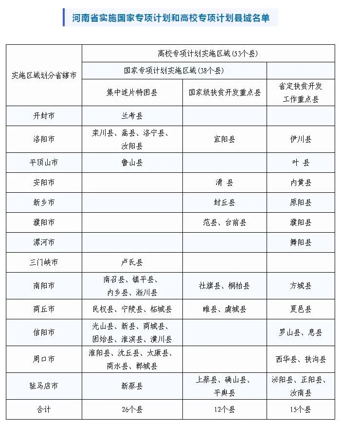 附件:河南省實(shí)施“國家專項(xiàng)計(jì)劃”和“高校專項(xiàng)計(jì)劃”縣域名單