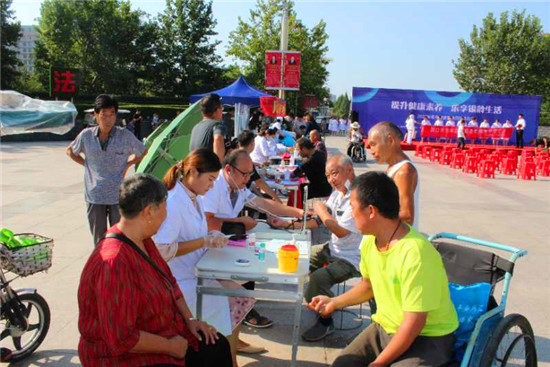 儀式現(xiàn)場,多家單位負(fù)責(zé)人宣讀了“提升健康素養(yǎng) 樂享銀齡生活”倡議書。儀式結(jié)束后,現(xiàn)場舉行大型義診、健康咨詢、文藝表演等活動(dòng)。市、區(qū)醫(yī)療單位設(shè)立13個(gè)咨詢服務(wù)臺(tái),圍繞“提升健康素養(yǎng) 樂享銀齡生活”活動(dòng)主題,現(xiàn)場普及老年健康知識(shí),通過擺放健康知識(shí)展版、發(fā)放健康宣傳折頁、提供健康咨詢和現(xiàn)場義診服務(wù)等形式,為老年人提供量血壓、測血糖、測視力、等健康服務(wù)。針對常態(tài)化疫情防控中對老年人的生活照顧、健康管理、醫(yī)養(yǎng)結(jié)合、慢性病預(yù)防等內(nèi)容,結(jié)合老年人特點(diǎn),圍繞營養(yǎng)膳食、運(yùn)動(dòng)健康、心理健康、合理用藥等方面展開科普宣傳指導(dǎo),普及老年健康科學(xué)知識(shí)和老年健康相關(guān)政策。叮囑老人做好居家衛(wèi)生,出門戴口罩,做好個(gè)人防護(hù),并針對老年人常見的高血壓、糖尿病、冠心病等,給予健康評(píng)估和健康指導(dǎo),讓廣大老年人切身感受到社會(huì)的關(guān)懷和溫暖,提高了老年人的健康素養(yǎng),收到了良好的社會(huì)效果。