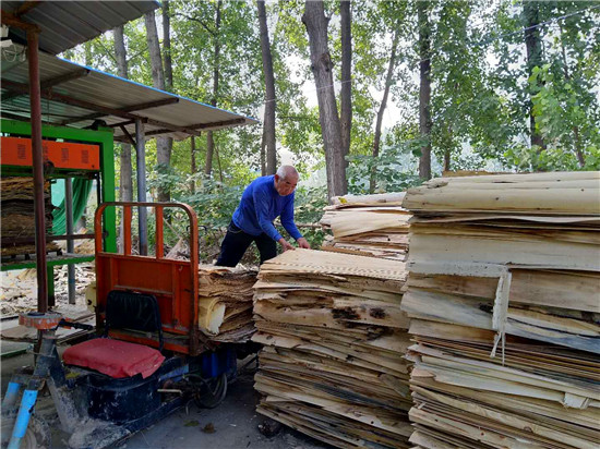 8月28日,商水縣練集鎮(zhèn)馬莊村的四紅木業(yè)有限公司板材加工車間內(nèi),機(jī)器轟鳴,工人忙著斷木、打圓、卷板,一張張板材被切割后,拉到曬板場晾曬?!坝辛诉@份收入,去年全家脫貧摘帽?!闭谲囬g里搬運(yùn)板材的馬莊村貧困戶王天林對(duì)記者說。