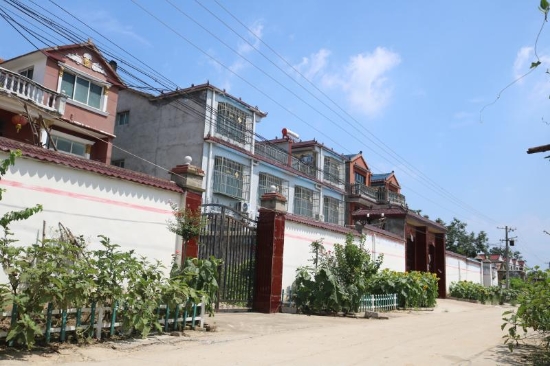 “整治后的坑塘邊綠村成蔭,不時(shí)有小鳥掠過水面又飛回樹梢;村頭巷尾、花開四季,孩童們在村中追逐嬉鬧,老人們在村道上怡然自得地徜徉散步,歡笑不斷;群眾文化廣場上,村民集聚在這里休閑、娛樂、健身,成了村里人氣最旺的地方?!绷硪粋€(gè)具有代表性的鄉(xiāng)村振興新版本是馬鋪鎮(zhèn)最南端軍吳行政村,這個(gè)村子位于惠濟(jì)河北岸,207省道橫穿南北,轄軍吳,高口,高莊,吳樓,許莊,王莊,豆腐營七個(gè)自然村,耕地面積4288畝,總?cè)丝跀?shù)4236人。近年來,這個(gè)村子除大力發(fā)展中藥材、蔬菜等經(jīng)濟(jì)作物種植外,還以“二四四”工程和“雙強(qiáng)”村創(chuàng)建為抓手,開展“美麗鄉(xiāng)村”行動,打造美麗庭院,對村中主次道路進(jìn)行硬化、綠化、美化、亮化,發(fā)展以生態(tài)為底色的宜居宜游農(nóng)旅村落,成為鹿邑縣首批“千萬工程”示范村。