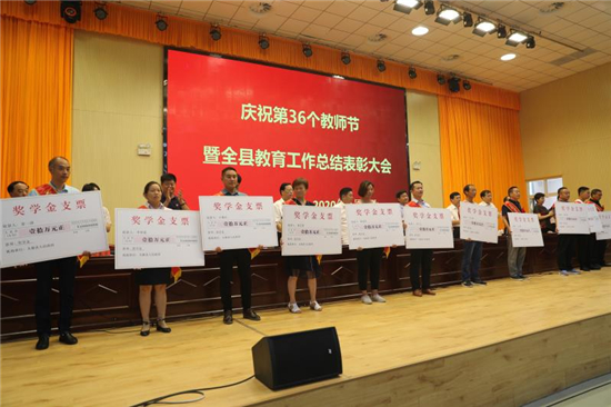 與會領導還分別為優(yōu)秀教師、優(yōu)秀教育工作者、師德標兵代表、最美教師、教育全面工作先進單位、尊師重教先進鄉(xiāng)鎮(zhèn)、尊師重教先進局委和2020年考入清華、北大學生及家長進行了頒獎。