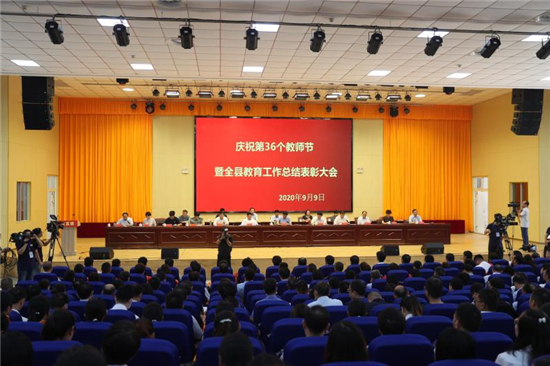 全縣各鄉(xiāng)鎮(zhèn)黨委書記和主抓教育副鄉(xiāng)鎮(zhèn)長,縣直各單位主要負責人,教體局班子成員及各股室負責人,各鄉(xiāng)鎮(zhèn)中心校校長、局直學校校長,中小學校長代表,優(yōu)秀教師代表、學生代表等1100人共同慶祝第36個教師節(jié)暨全縣教育工作總結表彰大會。