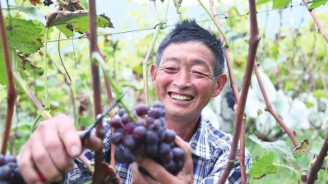 ? 9月14日,汝陽(yáng)縣十八盤(pán)鄉(xiāng)斜紋村冰墨葡萄種植專(zhuān)業(yè)合作社社員在葡萄園里采摘葡萄。斜紋村黨支部積極引導(dǎo)村民種植冰墨葡萄130畝。