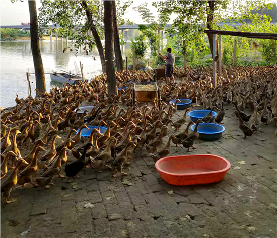 為了擴大變蛋原料來源,她與當地及外地多家養(yǎng)雞企業(yè)簽訂訂單協議,滿足自己加工變蛋需要。為了滿足鴨蛋貨源,她在潁河灣一個支流處新建一個養(yǎng)鴨基地,目前養(yǎng)鴨5000余只,日產鴨蛋5000枚,基本滿足當前加工咸鴨蛋需要。