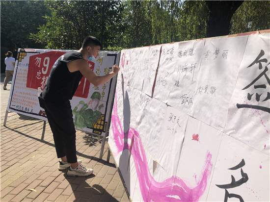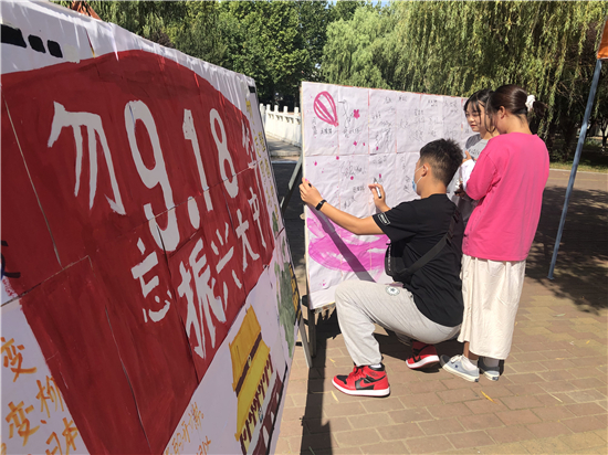 記者在河南科技職業(yè)大學(xué)看到,學(xué)校團(tuán)委組織各學(xué)院團(tuán)總支開展“銘記九一八勿忘國(guó)恥”主題團(tuán)日活動(dòng),各級(jí)團(tuán)組織通過(guò)主題教育班會(huì)、簽名儀式等活動(dòng)重溫“九一八”歷史事件。河南科技職業(yè)大學(xué)團(tuán)委副書記劉曉娜表示,通過(guò)回顧這段歷史,同學(xué)們深刻體悟到了中華民族曾經(jīng)經(jīng)受的苦難和今天幸福生活的來(lái)之不易,以此激發(fā)同學(xué)們的責(zé)任感和愛(ài)國(guó)熱情,進(jìn)一步增強(qiáng)青年學(xué)子們的愛(ài)國(guó)主義意識(shí),讓大家銘記歷史,不忘初心、牢記使命,堅(jiān)定青年發(fā)奮圖強(qiáng)的理想信念,為實(shí)現(xiàn)中華民族偉大復(fù)興的中國(guó)夢(mèng)貢獻(xiàn)青春力量。