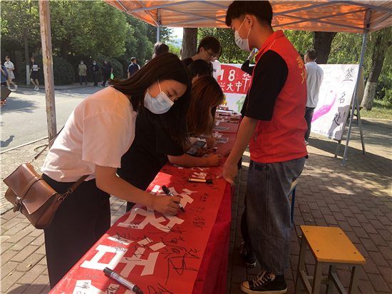 活動(dòng)結(jié)束后,同學(xué)們紛紛表示,要堅(jiān)定擁護(hù)中國(guó)共產(chǎn)黨的領(lǐng)導(dǎo),勤奮學(xué)習(xí)、嚴(yán)于律己,用實(shí)際行動(dòng)肩負(fù)起實(shí)現(xiàn)中華民族偉大復(fù)興的歷史重任。圖為學(xué)生進(jìn)行簽名。
