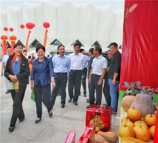 在固城鄉(xiāng)農副產品展臺,談起豐收節(jié),李報中滿臉喜悅。今年他承包的200多畝蘆筍種植基地大豐收,在致富的同時,還吸納十幾名貧困戶在基地務工,帶動他們脫貧致富?!斑@是我們農民自己的節(jié)日,借著豐收節(jié)不僅能推介農副產品,大家還能跟著熱鬧放松,是一舉多得的好事情。”李報中高興地說。