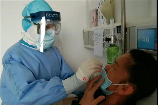 眾所周知,采集咽拭子、鼻咽拭子標(biāo)本是非常危險(xiǎn)的易感染密切接觸行為,同時(shí)對(duì)患者來(lái)說(shuō)也非常不適。在病區(qū)采集時(shí),胡奔奔總是動(dòng)作輕柔,邊采集邊輕聲安撫患者,緩解患者緊張情緒。而不少患者因?yàn)楦袘延诤急嫉南ば恼疹?,總是?qiáng)行壓抑著自己的癥狀,盡量不發(fā)出咳嗽,避免對(duì)胡奔奔造成更大危險(xiǎn)。