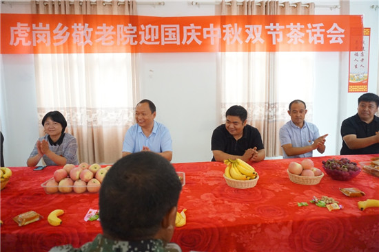 尊老、敬老、愛老是中華民族的傳統美德。9月28日,在國慶、中秋佳節(jié)來臨之際,鄲城縣虎崗鄉(xiāng)敬老院舉辦了迎國慶、中秋雙節(jié)茶話會,豐富了老人們歡慶、團圓的節(jié)日氛圍?;忇l(xiāng)全體黨政班子成員參加了此次茶話會。