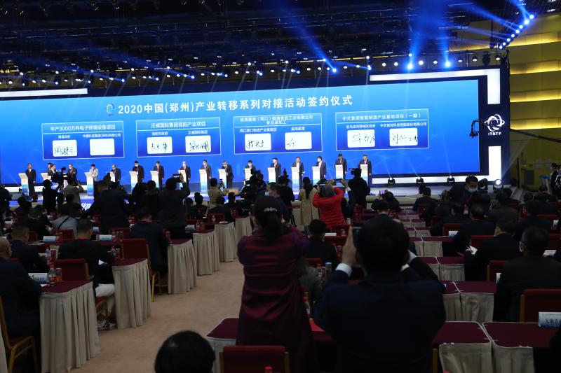 10月14日、15日,2020中國(guó)(鄭州)產(chǎn)業(yè)轉(zhuǎn)移系列對(duì)接活動(dòng)在鄭州市舉行。15日上午,在鄭州國(guó)際會(huì)展中心軒轅堂舉行開(kāi)幕式暨產(chǎn)業(yè)轉(zhuǎn)移合作簽約儀式,鄲城縣長(zhǎng)李全林、縣政府黨組成員張仁杰帶領(lǐng)鄲城代表團(tuán)參會(huì),并成功簽約5個(gè)產(chǎn)業(yè)轉(zhuǎn)移項(xiàng)目,涉及食品、新能源、制造業(yè)、高新技術(shù)等諸多領(lǐng)域,簽約金額達(dá)31.6億元。