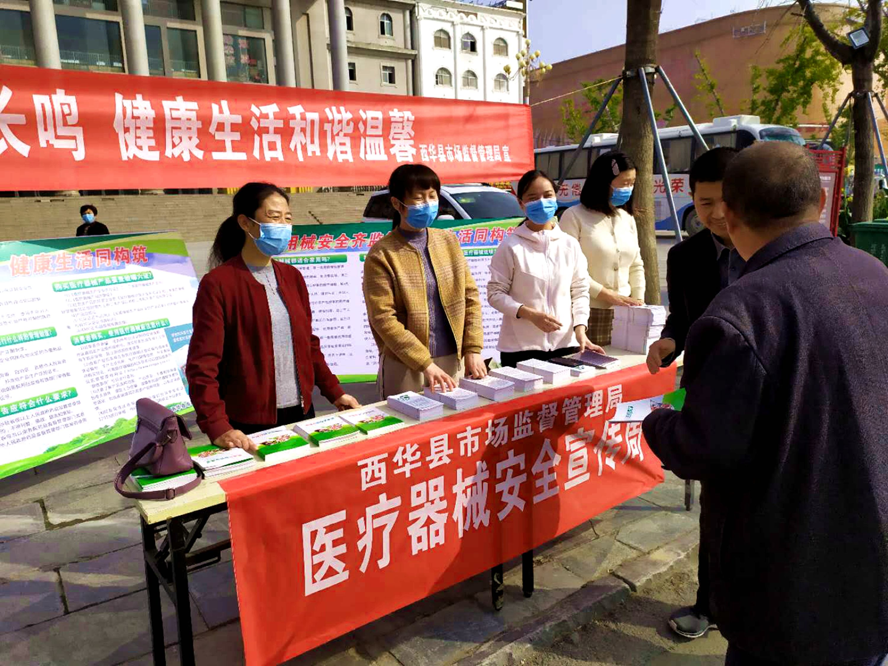 當(dāng)日,西華縣市場(chǎng)監(jiān)管局在縣城女媧廣場(chǎng)開展醫(yī)療器械安全宣傳周活動(dòng)。工作人員一大早就來到宣傳活動(dòng)現(xiàn)場(chǎng),掛條幅、擺桌子、設(shè)展板,忙得不亦樂乎。