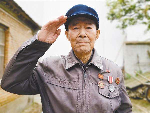 聽(tīng)說(shuō)記者要為他照相,老人立即要求家人為他換身干凈的衣服,很認(rèn)真地把軍功章、獎(jiǎng)?wù)乱灰淮髟谏砩?,雙腿合攏,努力地挺直上身,對(duì)著鏡頭打了一個(gè)標(biāo)準(zhǔn)的敬禮?! ?/p>