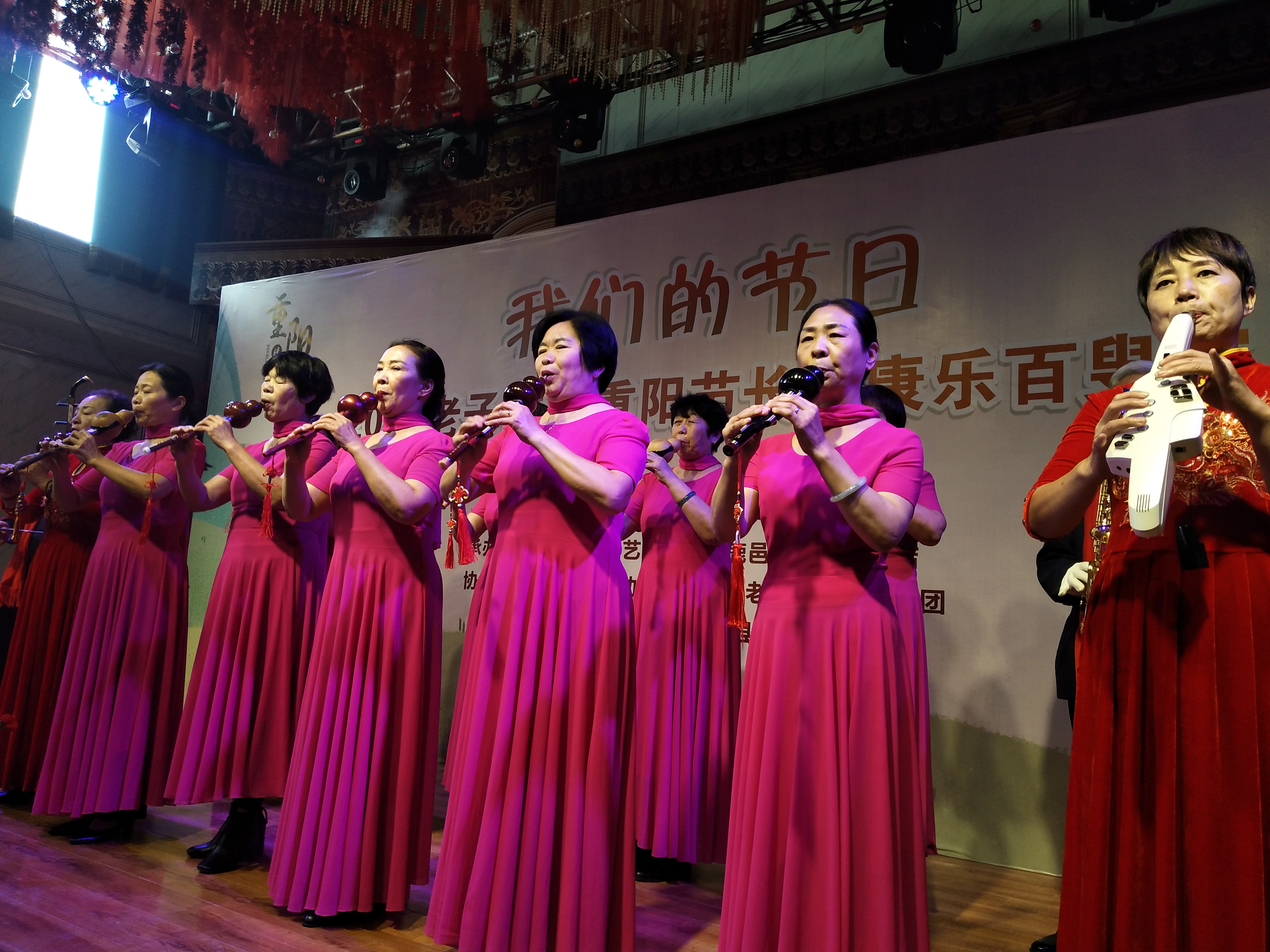 鹿邑縣舉辦的“我們的節(jié)日——2020老子故里長安康樂百叟宴”于上午11時(shí)開始,來自縣曲藝家協(xié)會(huì)、縣詩詞協(xié)會(huì)、縣書畫協(xié)會(huì)的老藝術(shù)家們進(jìn)行才藝展示,首先是縣老干部大學(xué)葫蘆絲隊(duì)表演了葫蘆絲合奏《花好月圓》《九月九的酒》,縣詩詞協(xié)會(huì)的翟明、張明山、林建華分別放聲朗誦了《重陽禮贊》《我愛仙鄉(xiāng)的土地》《歡聚在長安》,而縣曲藝家協(xié)會(huì)的史云龍表演的墜子《王華買爹》更是別有風(fēng)情……