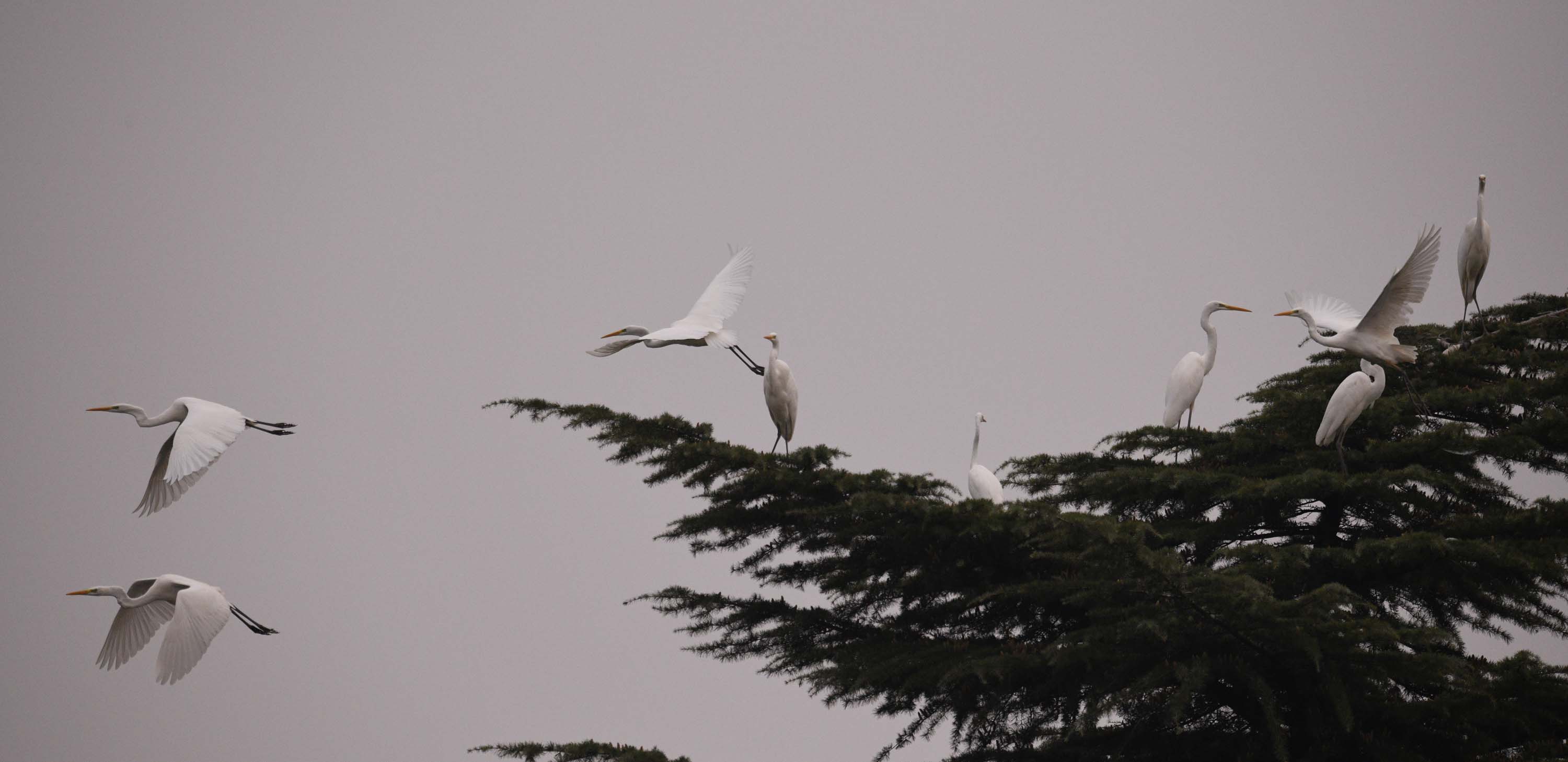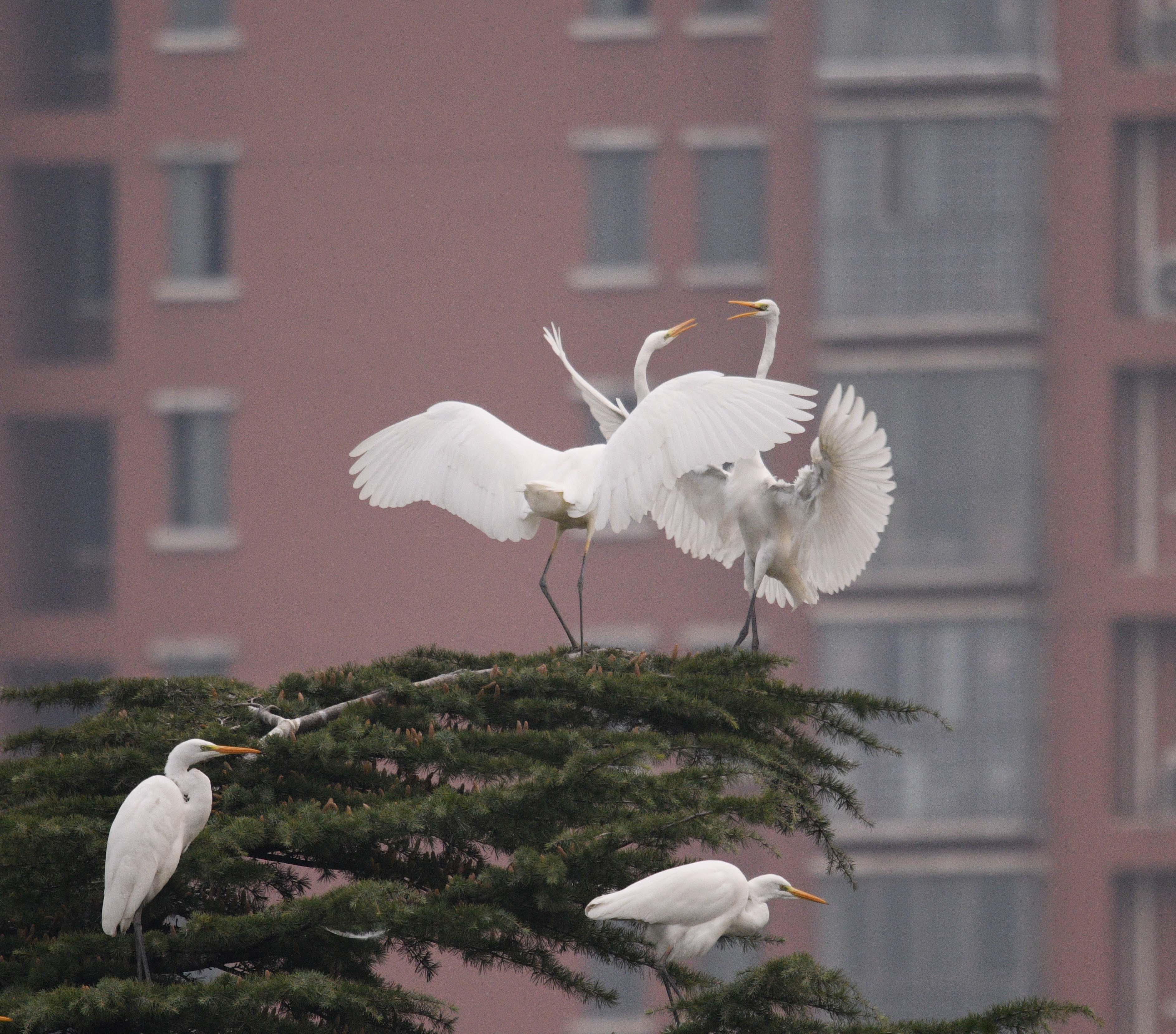 近日,市區(qū)漢陽(yáng)路沙潁河大閘的中心島林間,飛來(lái)近百只白鷺。這里幽靜舒適的環(huán)境和河里豐富的魚蝦,滿足它們棲息和生活。它們面對(duì)行人,不驚不詫,時(shí)而盤旋嬉戲,時(shí)而捉魚果腹。人鳥和諧相處,構(gòu)成美麗的生態(tài)風(fēng)情。②9