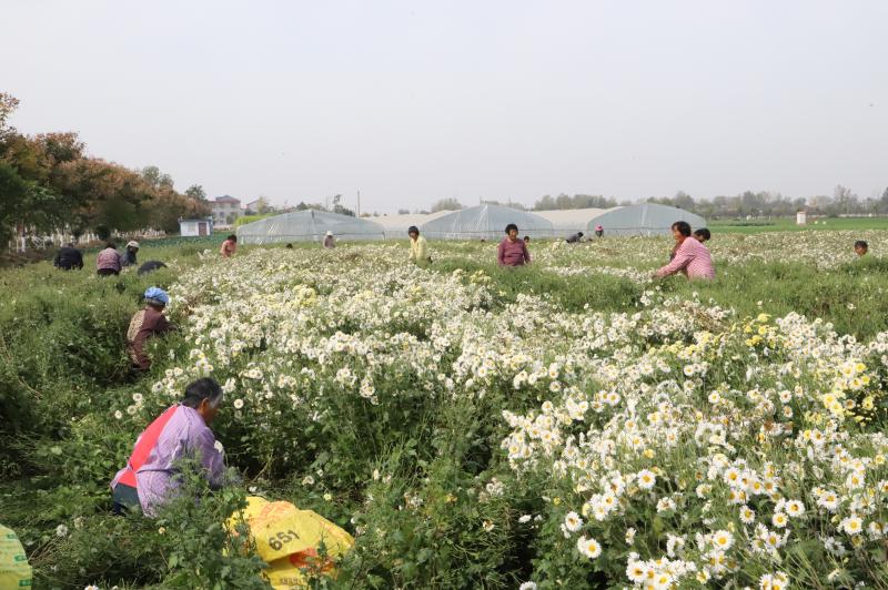 原來,菊花田的老板叫晉振中,于2018年從全縣脫貧攻堅(jiān)種植信息渠道得知種菊花能致富,銷售的末端是安徽亳州的藥材市場和一些花茶商家。特別是種植方式和平原種植紅薯一樣,把田地打成壟,栽苗、施肥、澆水、除草,9月份采摘一次、11月份采摘一次,剩下的菊花秸稈粉碎到田間作為肥料,還能種植晚小麥,十分方便。于是,他通過鎮(zhèn)村兩級黨員干部協(xié)助流轉(zhuǎn)了100畝土地,2019年就掙了20多萬元。由于晉菜園村是貧困村,在他的菊花田務(wù)工的勞動力大多是貧困戶,能帶動近百戶貧困戶脫貧致富,晉振中欣慰地覺得自己為脫貧攻堅(jiān)做了一份大貢獻(xiàn)。