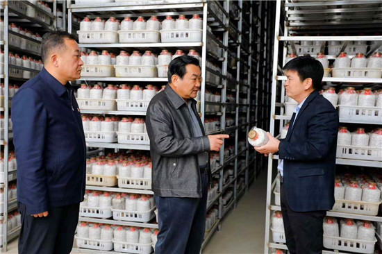 在羅古洞行政村預(yù)脫貧戶許廣東家中,王國璽聽取了該戶的幫扶情況匯報,詳細(xì)詢問許廣東政策落實(shí)情況,對該戶采取的針對性幫扶措給予了肯定。在華瑞農(nóng)牧食用菌基地,王國璽參觀了該基地產(chǎn)品展示廳、直播間,了解企業(yè)生產(chǎn)、擴(kuò)建情況,夸贊該企業(yè)為全縣特色食用菌種植帶好了頭,起到了很好的示范帶動作用,鼓勵該企業(yè)要利用好網(wǎng)絡(luò)直播平臺,拓寬產(chǎn)品銷路,增加企業(yè)效益,帶動更多群眾受益。在君趙食用菌基地,王國璽實(shí)地了解該企業(yè)菌種制作、生產(chǎn)流程,并對菌包生產(chǎn)、加工過程提出了改進(jìn)建議。