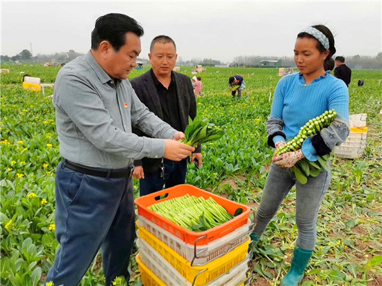 在張集鎮(zhèn)景鴻蔬菜種植基地,王國璽與正在干活的群眾親切交談,進(jìn)菜地、看長勢、問產(chǎn)量,詳細(xì)了解產(chǎn)業(yè)規(guī)劃建設(shè)、政策落實(shí)、發(fā)展規(guī)模、運(yùn)營模式、產(chǎn)品銷路、帶貧成效等具體做法和經(jīng)驗(yàn)。王國璽指出,在疫情防控常態(tài)化下,鄉(xiāng)賢有效利用資本市場,與家鄉(xiāng)勞動力資源、土地資源有效銜接,發(fā)揮產(chǎn)品優(yōu)勢,增加群眾收入,鞏固了脫貧成果,為鄉(xiāng)村振興打下了堅實(shí)基礎(chǔ),要做好宣傳推廣和經(jīng)驗(yàn)總結(jié)。