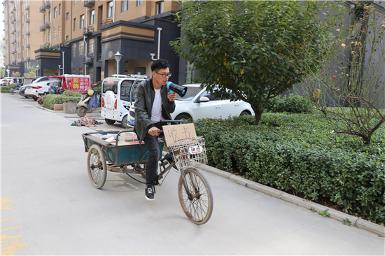 行駛30多分鐘后,劉啟昌來到太康縣城鑫港灣小區(qū),打開喇叭開關(guān),吆喝了起來:“誰家賣書,誰家有多余的書籍賣……”聽到吆喝聲,居民崔海英從家里抱出來一摞書?!叭亲魑臅瑢W(xué)生看了對(duì)寫作有好處?!贝藓S褧f給劉啟昌說。
