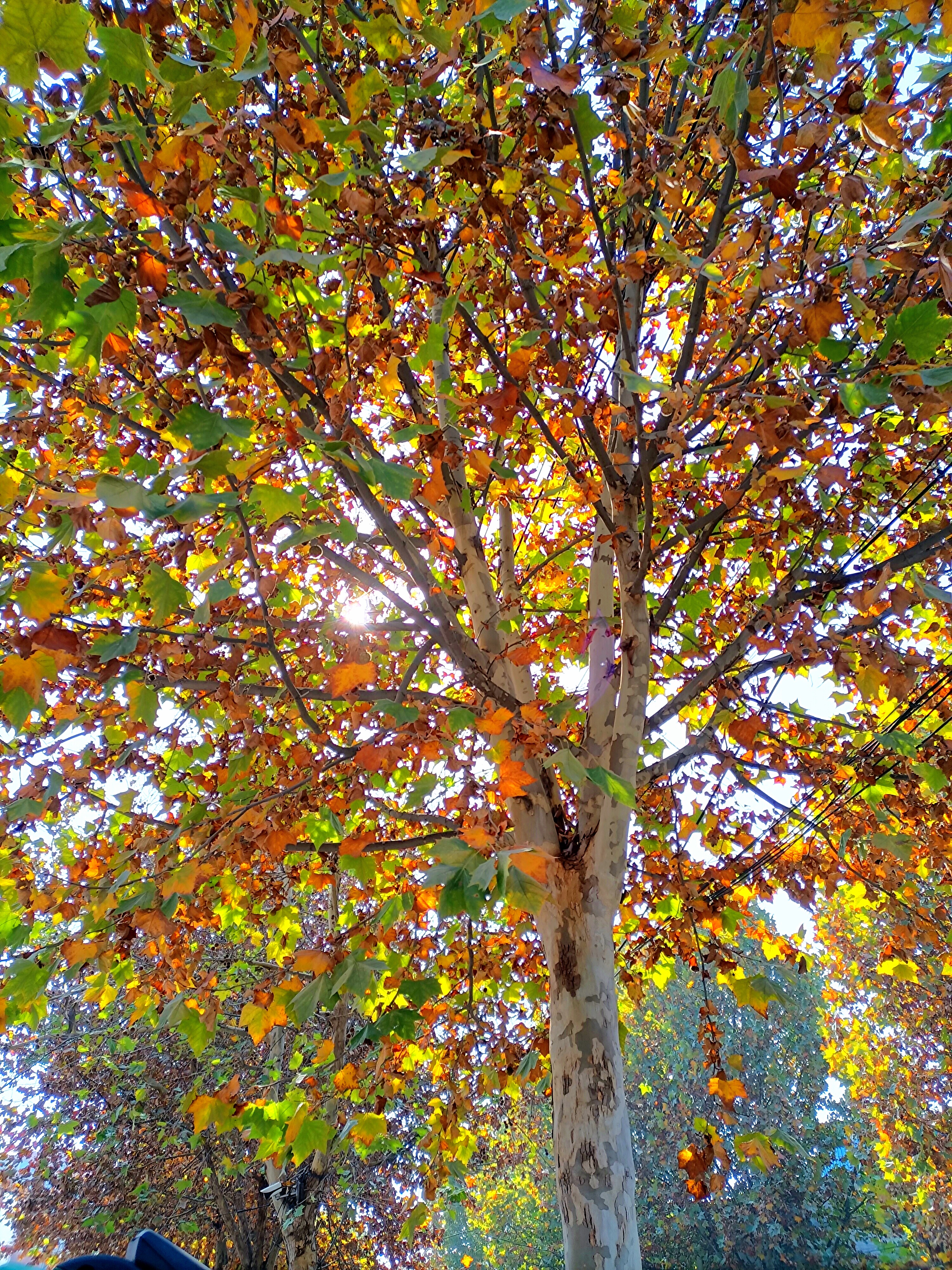 文昌大道路邊在陽光的映照下格外美麗的梧桐樹