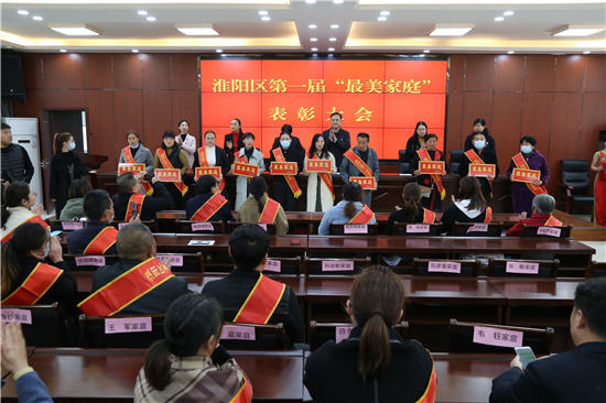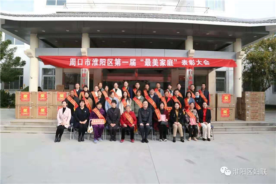 會議宣讀了《淮陽區(qū)婦聯(lián)關(guān)于表彰第一屆“最美家庭”的決定》;與會領(lǐng)導(dǎo)為最美家庭進行現(xiàn)場頒獎、頒發(fā)證書和門牌;兩戶“最美家庭”代表分享了家庭故事。