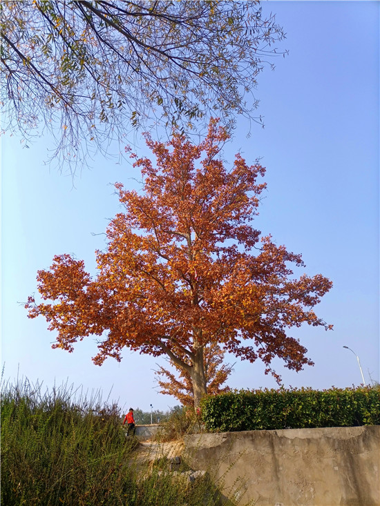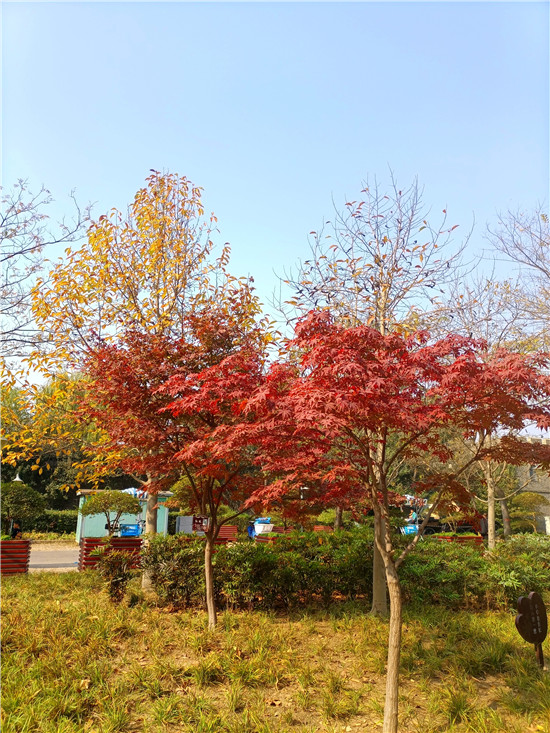 11月13日,初冬時(shí)節(jié),天氣晴好,周口公園景色惹人醉,不同植被換上紅、黃、綠等各色靚裝,呈現(xiàn)出一派五彩繽紛的絢麗景象,別具韻味,吸引市民前來(lái)欣賞、游玩。記者 宋海轉(zhuǎn) 攝②9