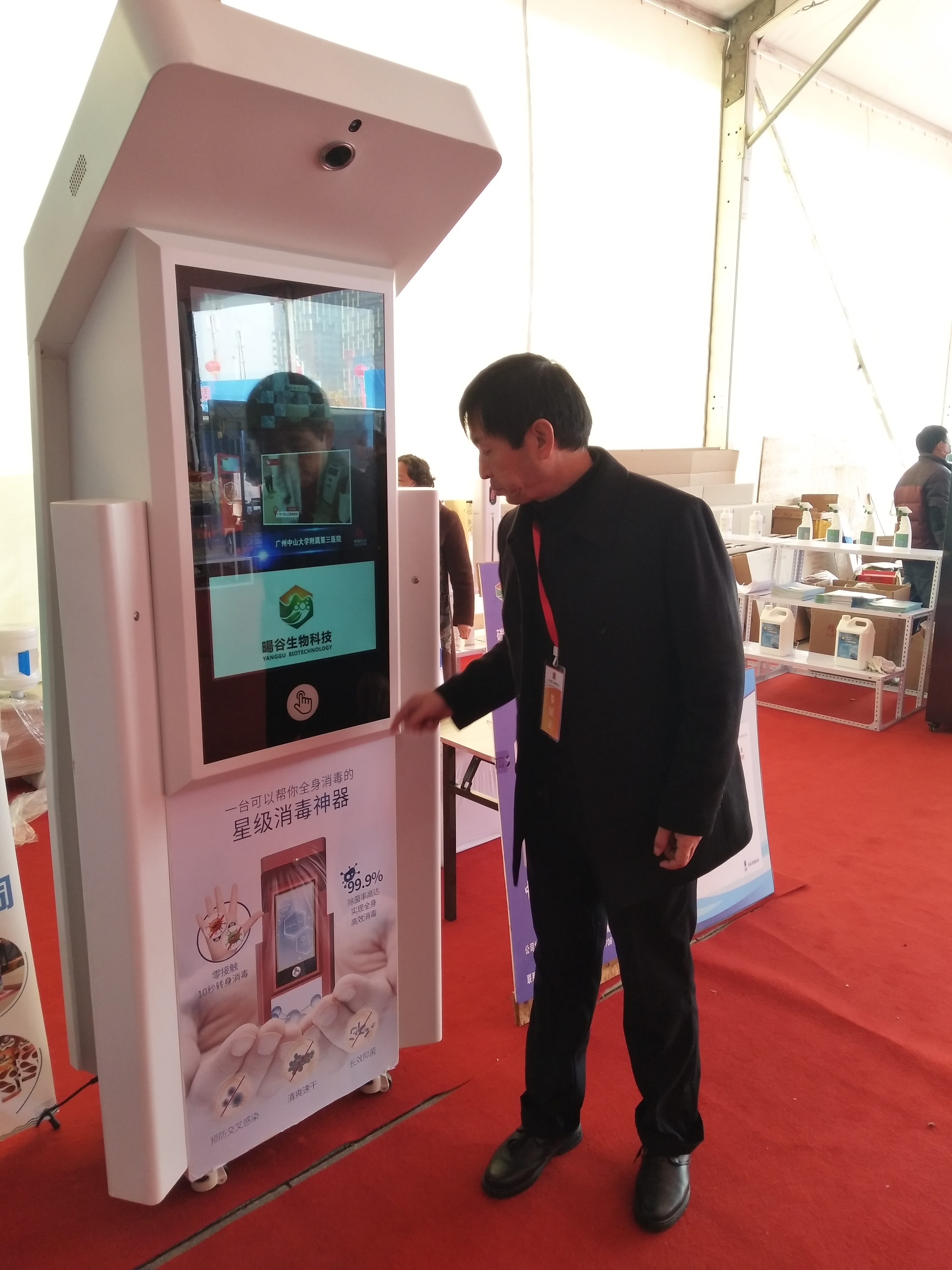 手掌往感控區(qū)上輕輕一罩,液晶屏四角就噴出霧化消毒液,大概持續(xù)10秒,足夠人轉(zhuǎn)一圈做周身消毒——在周商產(chǎn)品展示展覽大廳的西南角,北京陽(yáng)谷生物科技有限公司市場(chǎng)部總監(jiān) 、項(xiàng)城人張清峰在介紹“人體感應(yīng)消毒機(jī)”,引得市民紛紛圍觀體驗(yàn)。由于消毒液沒有異味,部分市民質(zhì)疑是清水,對(duì)此張清峰說:“我們用的是‘竹芳牌’碳酸型微酸性次氯酸消毒液,我們的消毒機(jī)主要是面向校園推廣的,給孩子用的東西除了要有效,還得保證安全溫和,碳酸型的消毒液就沒有這么大的刺激性?!睋?jù)張清峰介紹,“人體感應(yīng)消毒機(jī)”是今年五月下旬生產(chǎn)的新品,目前處在推廣階段,“當(dāng)?shù)弥芸谝k第一屆周商大會(huì)的消息,我第一時(shí)間想到要把消毒機(jī)展示給家鄉(xiāng)父老。我是個(gè)在北京打拼十多年的項(xiàng)城人,目前河南分公司由我負(fù)責(zé),項(xiàng)城市政府給了我很多支持?!?/p>