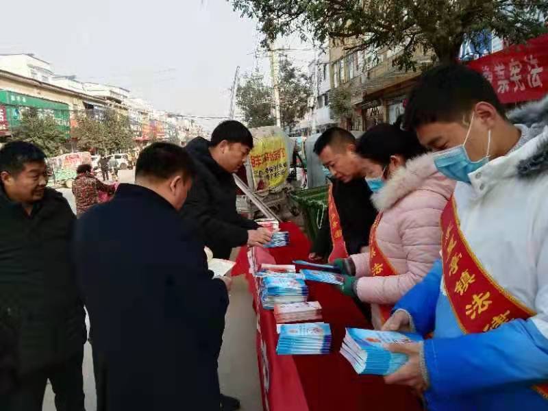 一大早,鎮(zhèn)黨委書記武瀟、副書記劉剛德、人大主席王慶輝、紀(jì)委書記徐如強、武裝部長王中原等帶領(lǐng)鎮(zhèn)司法所、綜治辦、自然資源所等部門工作人員,在鎮(zhèn)政府門前懸掛宣傳橫幅、設(shè)立咨詢臺、宣傳展板,認(rèn)真開展普法宣傳活動。
