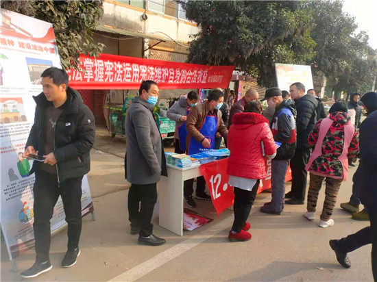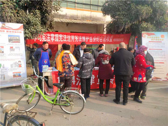 12月4日,西華縣址坊鎮(zhèn)司法所聯(lián)合鎮(zhèn)安監(jiān)辦鎮(zhèn)綜治辦、鎮(zhèn)婦聯(lián)、鎮(zhèn)軍人服務(wù)部、鎮(zhèn)派出所在鎮(zhèn)政府大門西50米路北設(shè)立咨詢臺,開展“12.4”憲法宣傳日普法活動(dòng),為過往行人送上豐富的法制教育大餐。