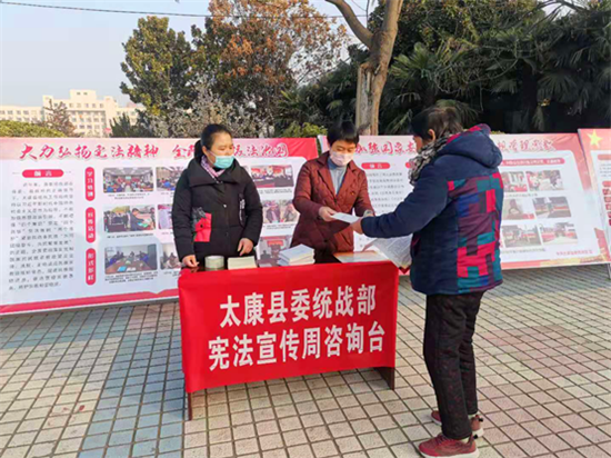 太康縣委統(tǒng)戰(zhàn)部制訂了《2020年全縣“憲法宣傳周”工作方案》,在縣人民廣場(chǎng)擺放展板,并設(shè)置咨詢臺(tái),為市民發(fā)放河南省宗教條例手冊(cè)、宗教政策宣傳頁、宗教事務(wù)條例各300份。