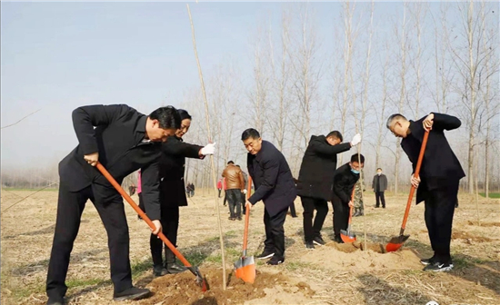 在西華縣國有林場植樹現(xiàn)場,縣領(lǐng)導(dǎo)與參加義務(wù)植樹活動的干部職工、志愿者們一起揮锨鏟土、植樹播綠,有的扶苗固根、有的揮鍬填土、有的踩緊壓實(shí),分工合作,齊心協(xié)力,呈現(xiàn)出一派熱鬧非凡的勞動景象。經(jīng)過一上午辛勤勞動,3000多棵新栽植樹苗迎風(fēng)而立,形成一道生機(jī)盎然的風(fēng)景線。