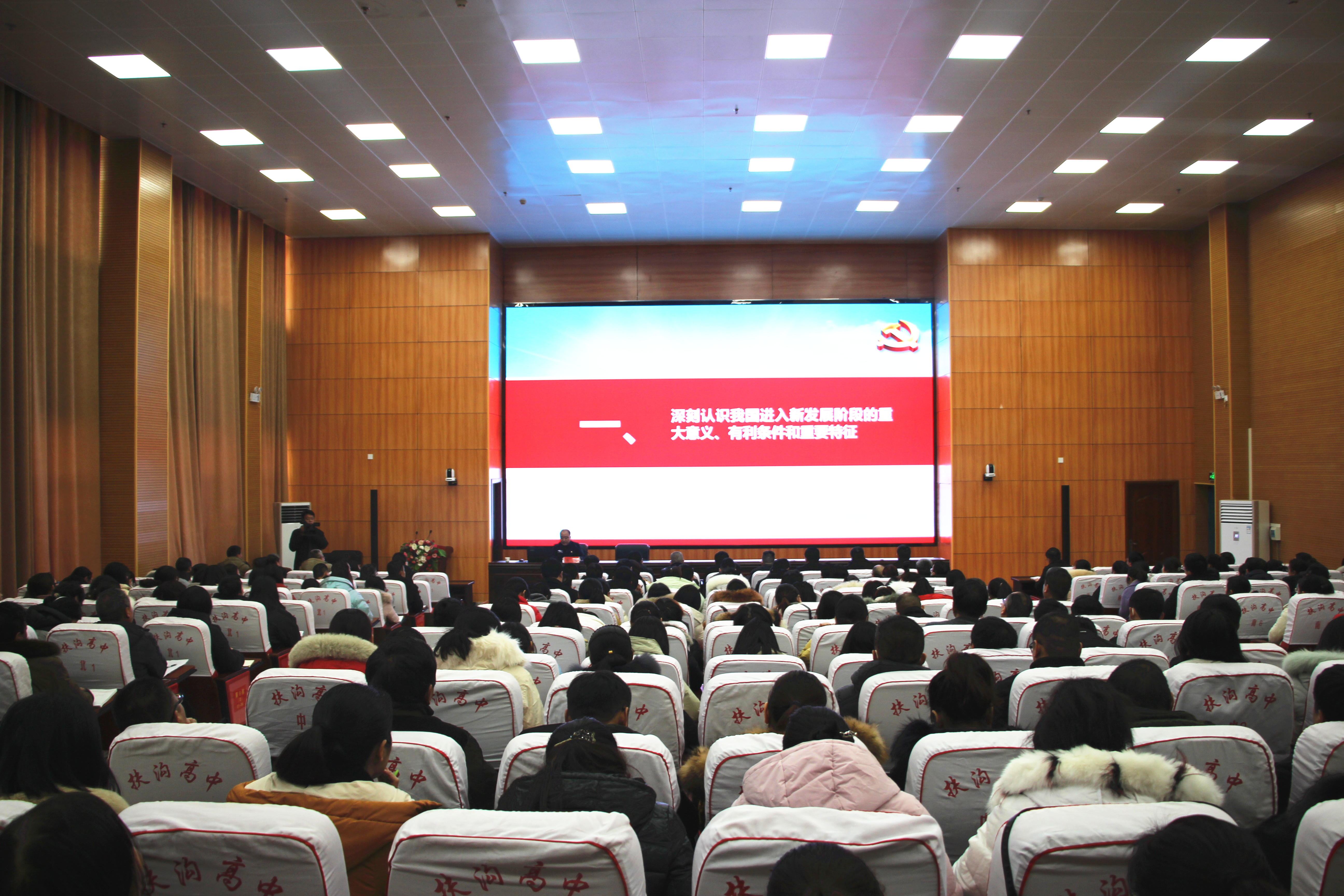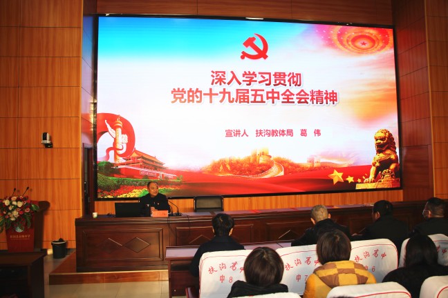 12月12日下午,扶溝縣高中德馨樓七樓會議室掌聲陣陣、座無虛席,扶溝縣學(xué)習(xí)貫徹黨的十九屆五中全會精神縣委宣講團(tuán)縣高中報告會正在這里舉行,宣講會特邀縣教體局黨組書記葛偉進(jìn)行宣講,局機關(guān)班子成員,縣高中班子成員和400余名教師參加了宣講會。