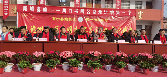 12月25日,商水縣文聯(lián)邀請書畫家走進(jìn)商水縣姚集一中開展“陽城春曉---周口書畫名家進(jìn)校園”活動??h政協(xié)主席孫培忠,縣人大常委會副主任李峰、原縣政協(xié)副主席司新國、縣教體局局長鄭春來、縣文聯(lián)主席劉秋玲出席活動。